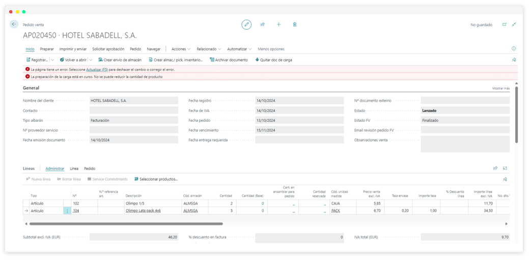 En estos casos, el ERP verifica que la suma total de las cantidades en los documentos de picking no supere la suma total de las cantidades en los documentos de venta.
