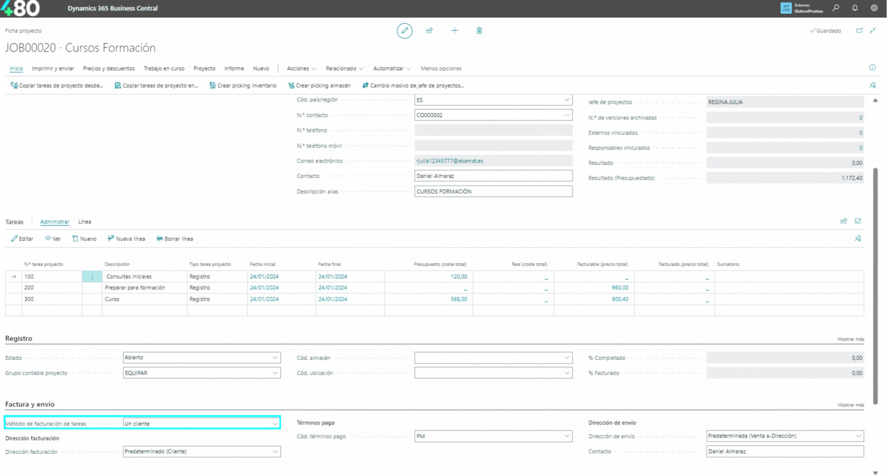 Para no duplicar desarrollos, hemos reemplazado nuestra funcionalidad por la que ofrece la versión estándar. En esta funcionalidad, una vez elegida la opción de método de facturación de más de un cliente, aparecerán en las líneas de tareas los campos de “No. Cliente” y “Factura a No. Cliente” para poder modificarlos.