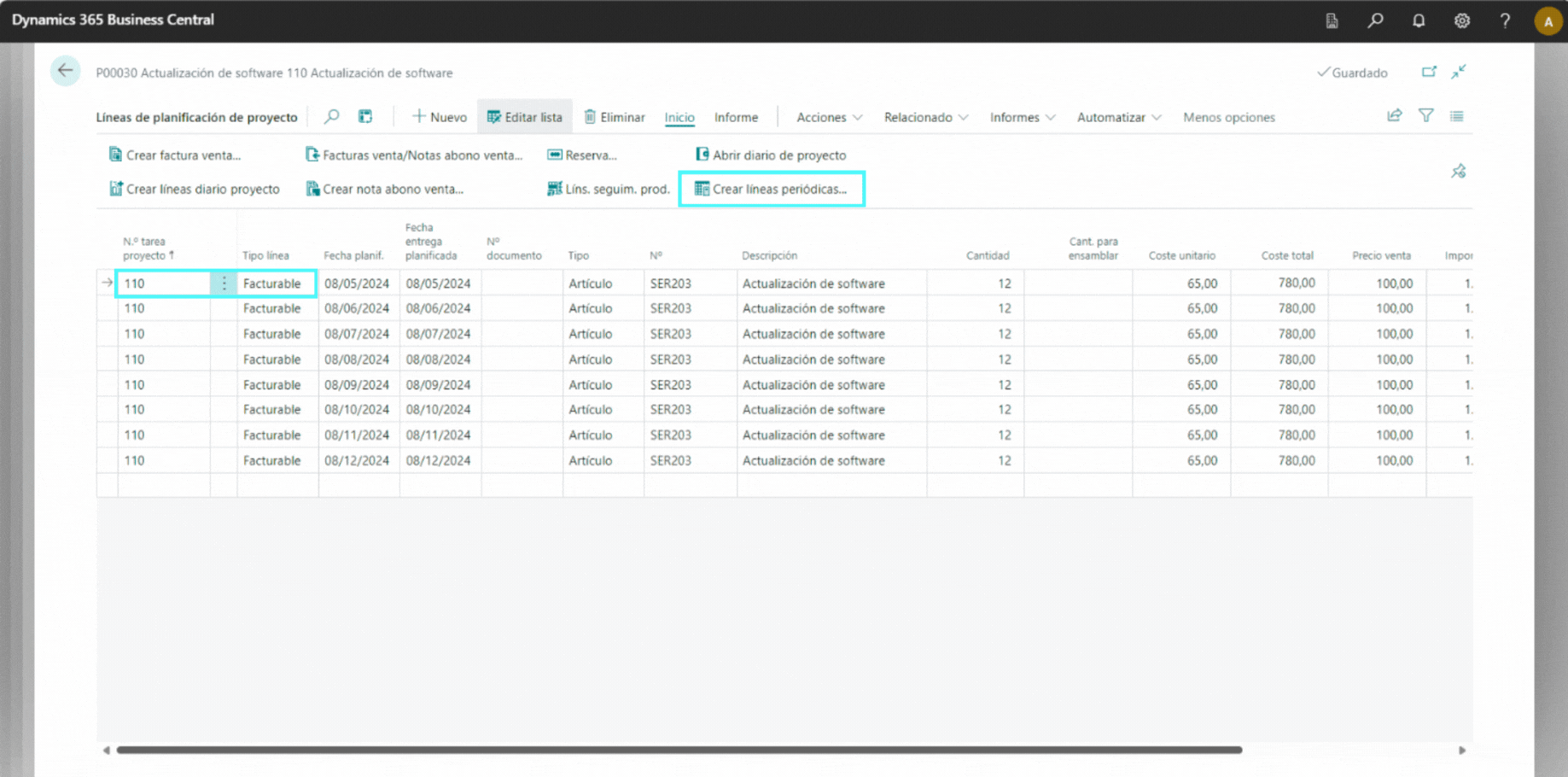Una vez configurada esta información, Ekafund generará automáticamente las líneas presupuestarias periódicas correspondientes, optimizando el proceso de planificación y control del proyecto.