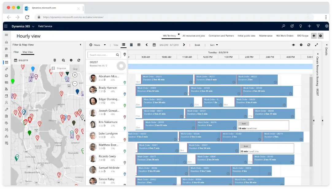 Automatiza y programa las visitas técnicas. Automatiza los calendarios para poder atender más citas cada día y seleccione los especialistas apropiados para las necesidades del cliente en función de la preparación, la prioridad, la ubicación y la duración estimada de la cita.