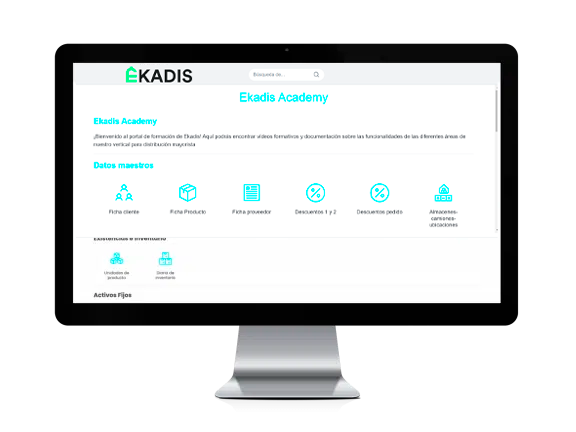 Ekademy es nuestra plataforma de formación guiada en la que encontrarás más de 60 vídeos de formación del ERP, divididos por módulos.